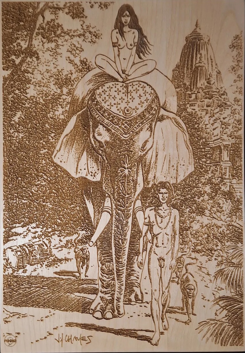 Ensuite vient le choix du dessin. Je réalise les marques pages essentiellement avec l’accord des auteurs de bandes dessinées en les rendant pyrogravable sans altérer "le coup de crayon" de l'artiste.