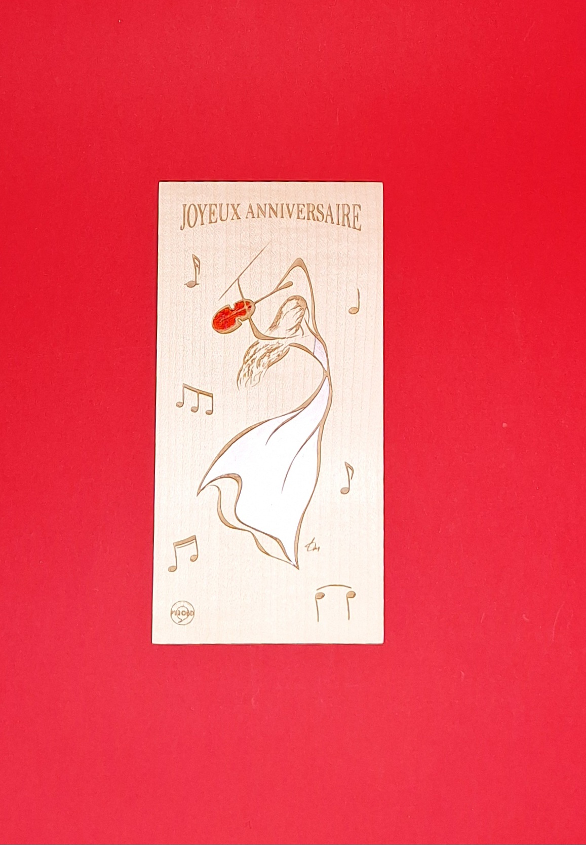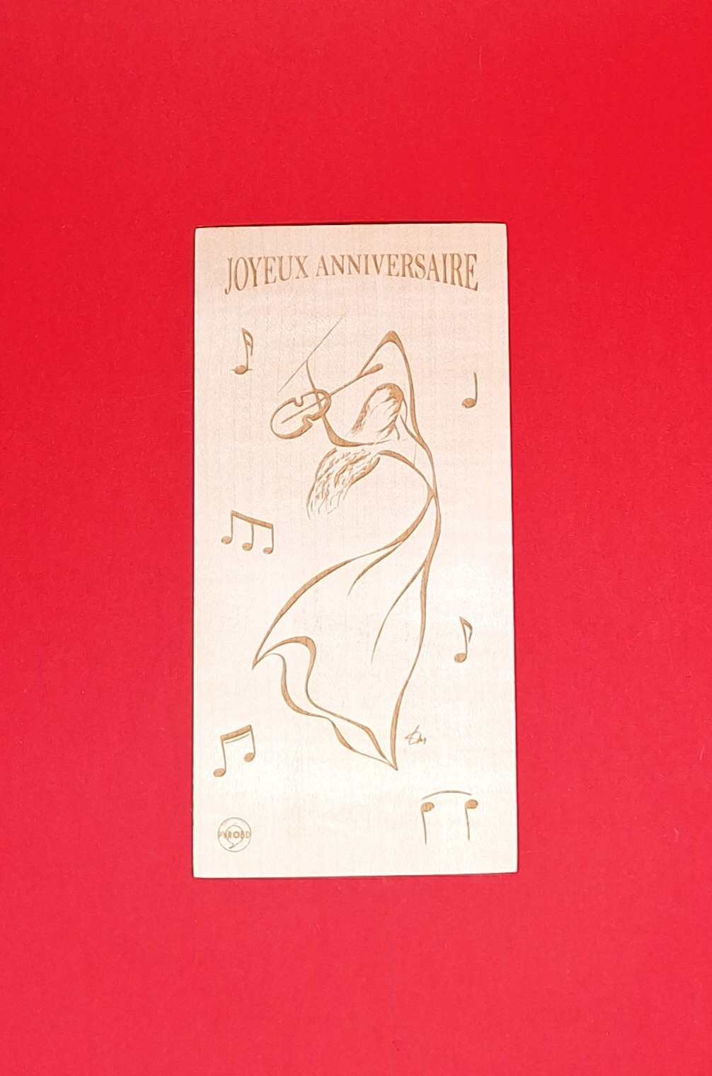 Carte d’anniversaire en bois pyrogravé, originale et hors du commun.