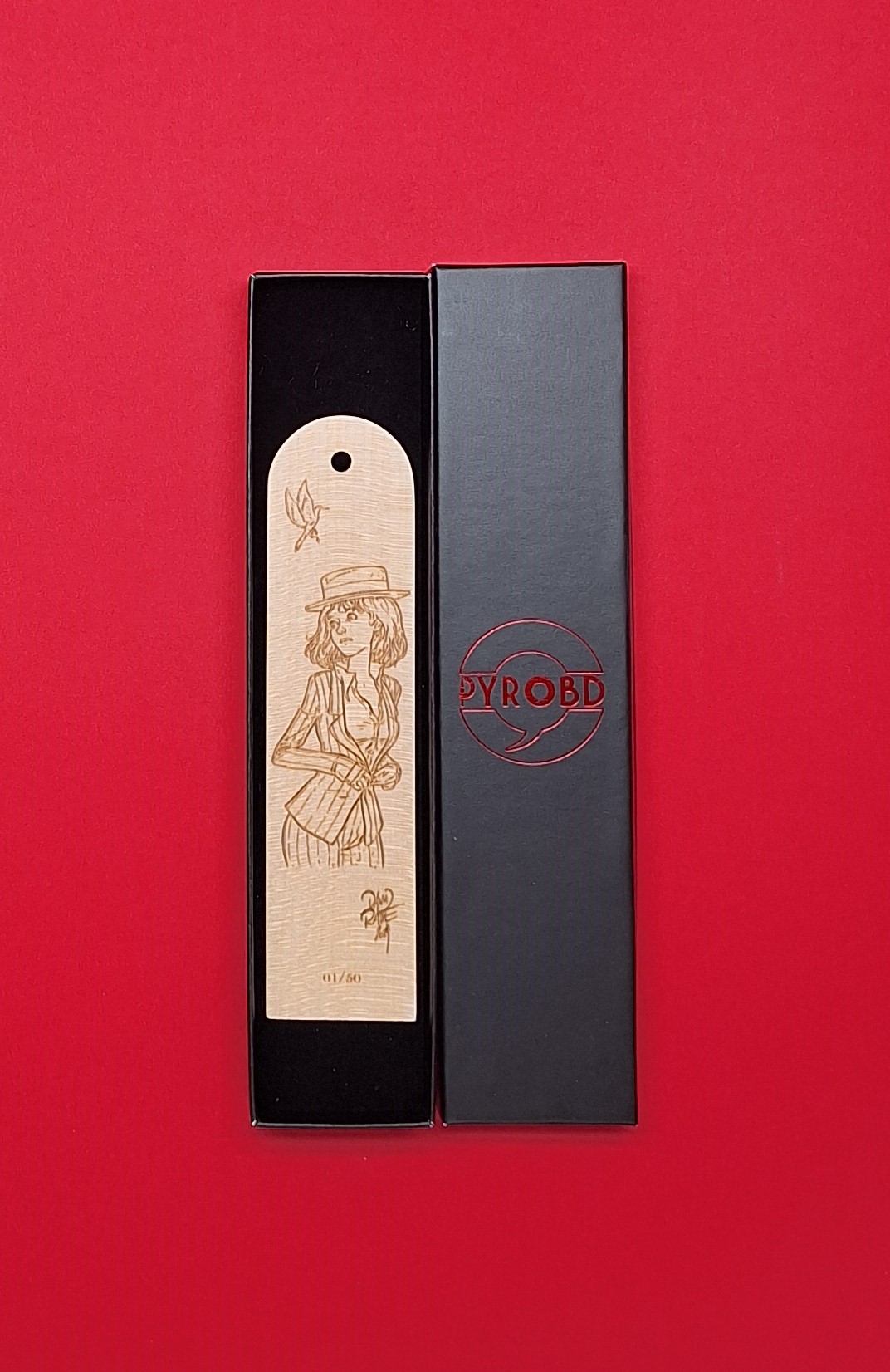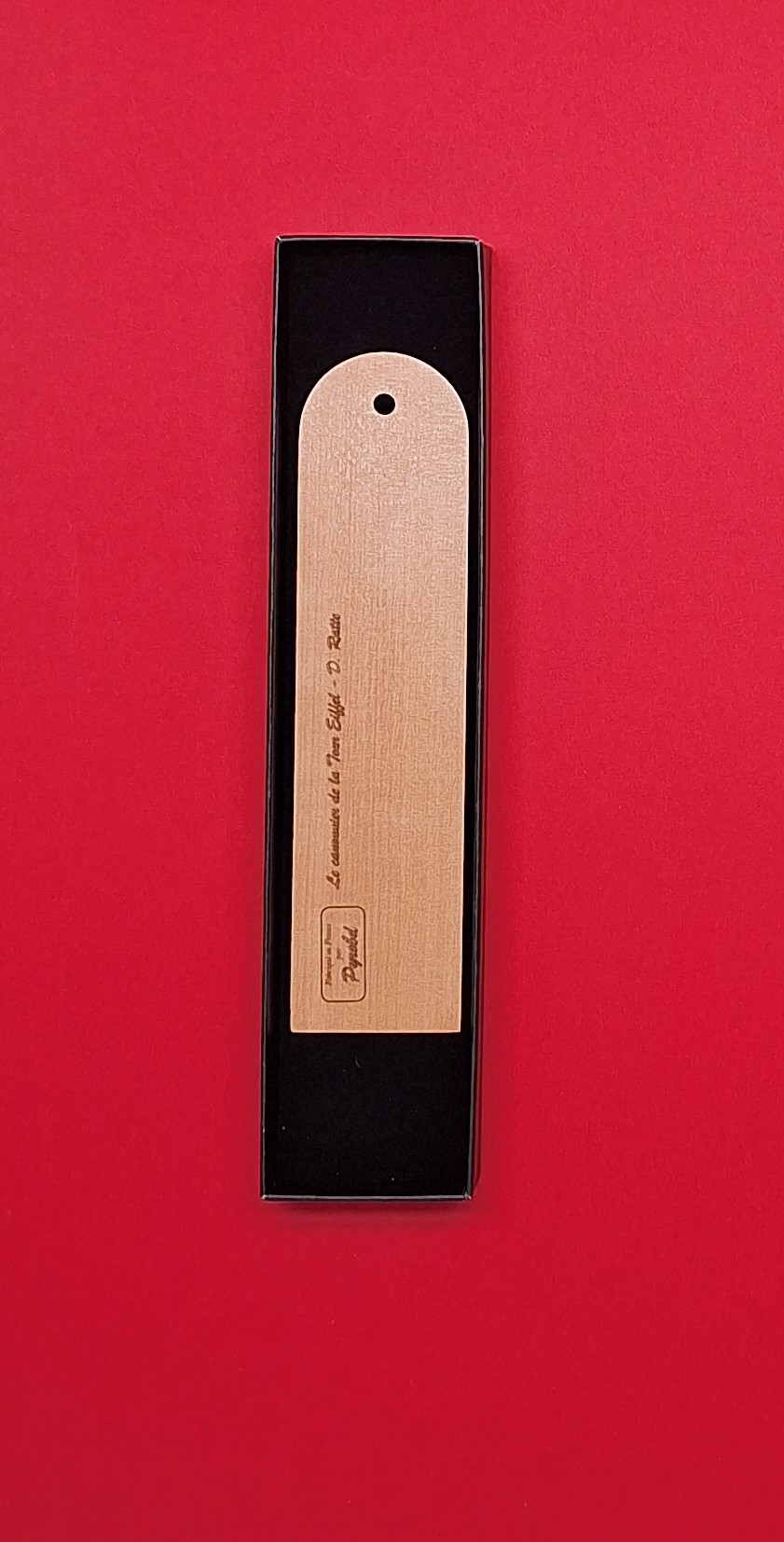Marque-page pyrogravé réalisé d’après la bande dessinée Le canonnier de la tour Eiffel de David Ratte.