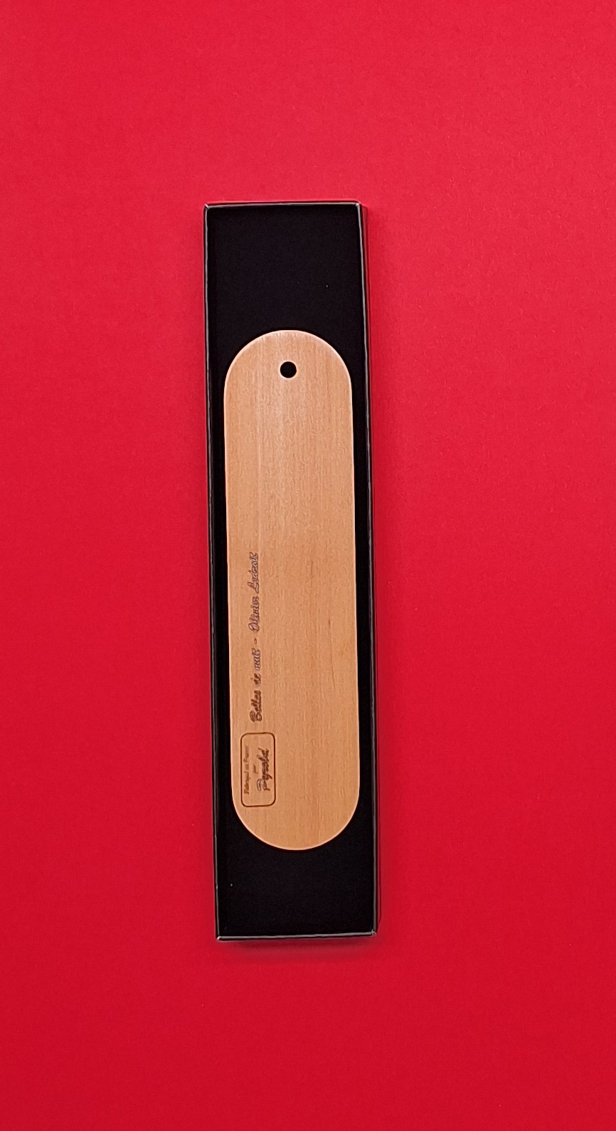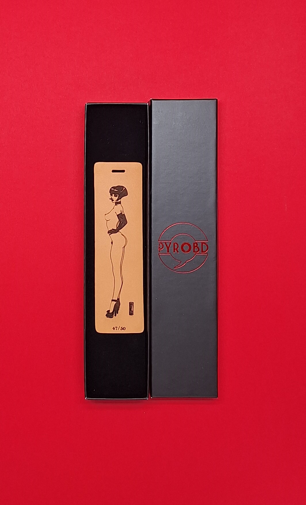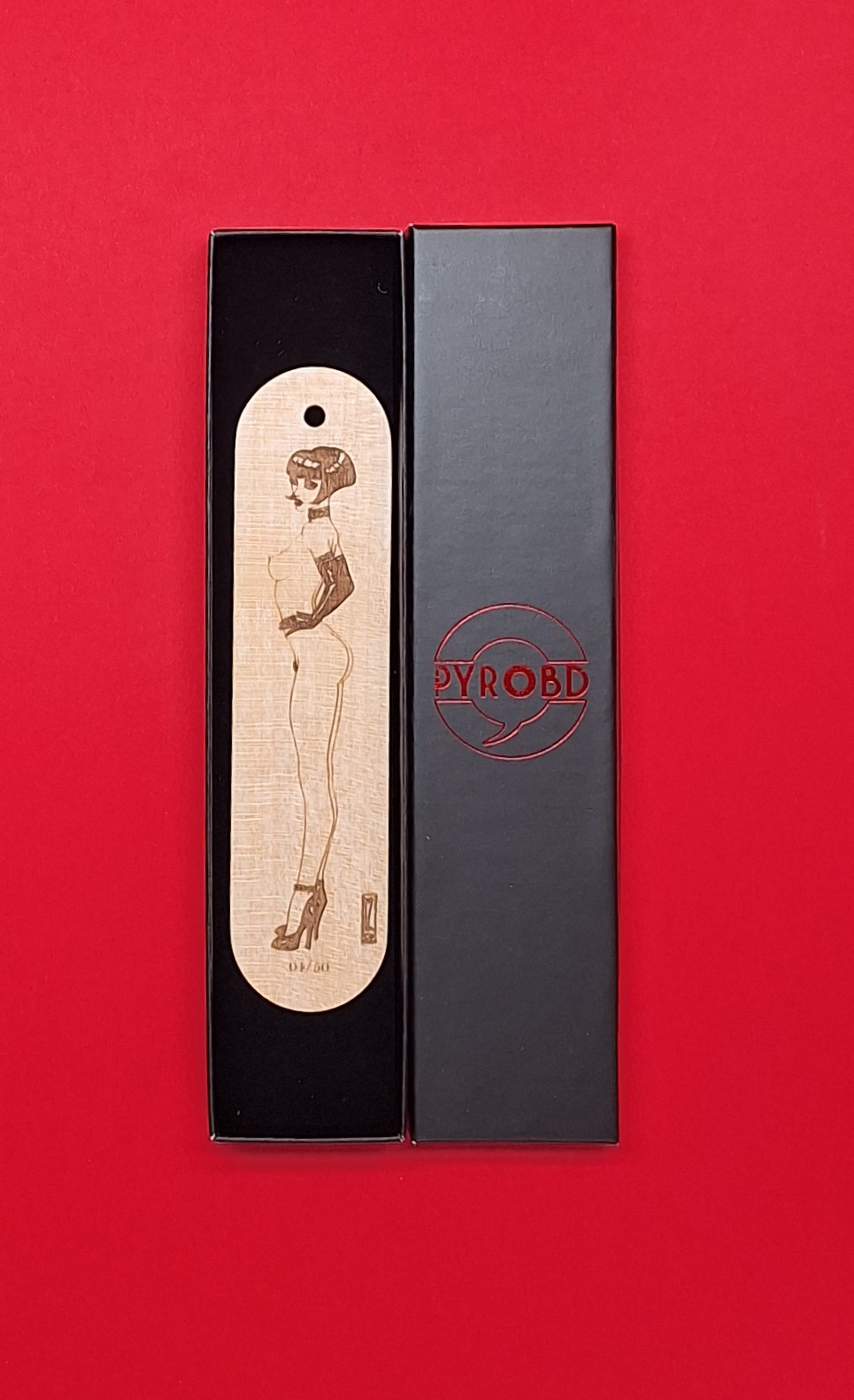 Marque-page pyrogravé représentant une jeune femme de coté issue du livre Belles de nuit par Olivier Ledroit