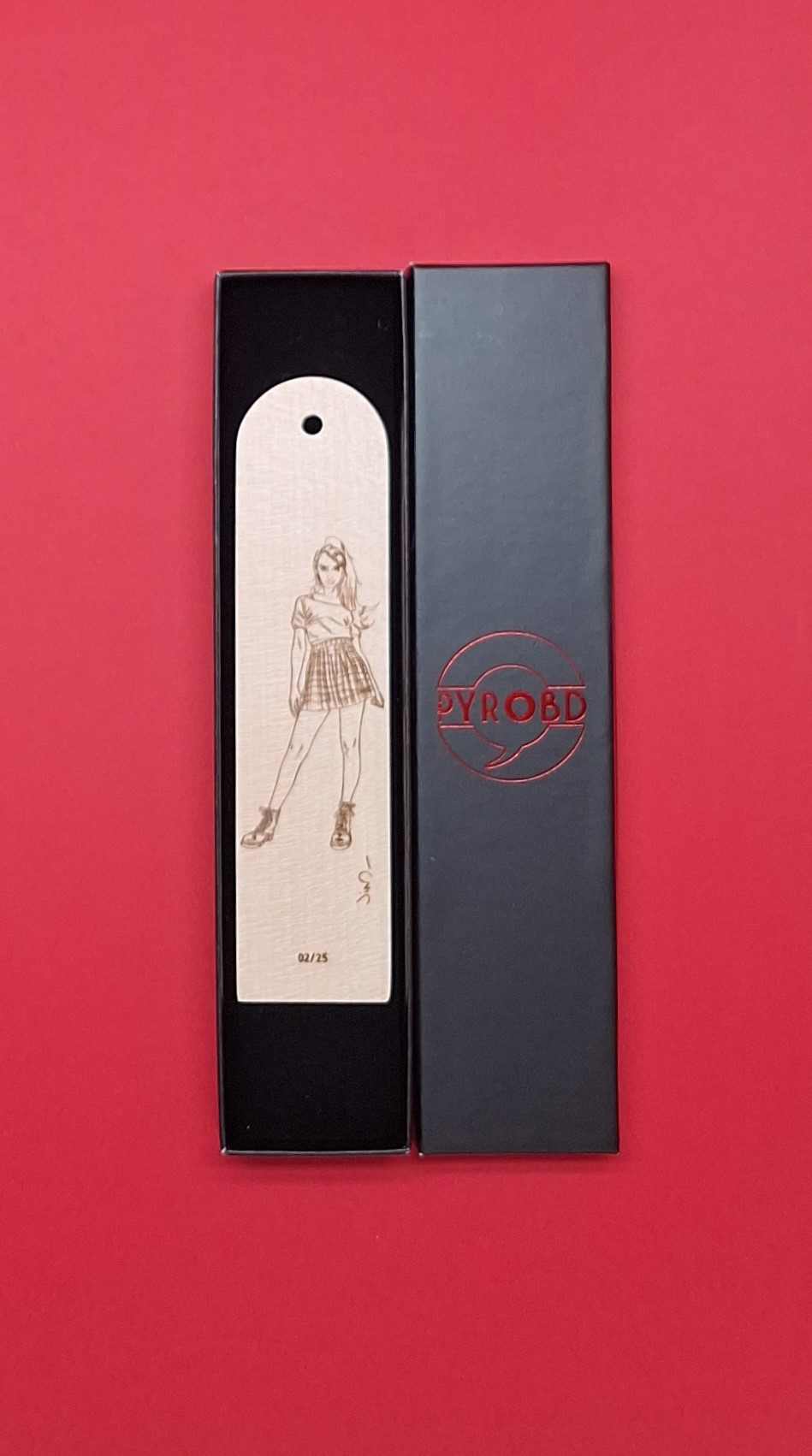 Marque-page pyrogravé réalisé d’après un dessin de Jim représentant Zoé Carrington.