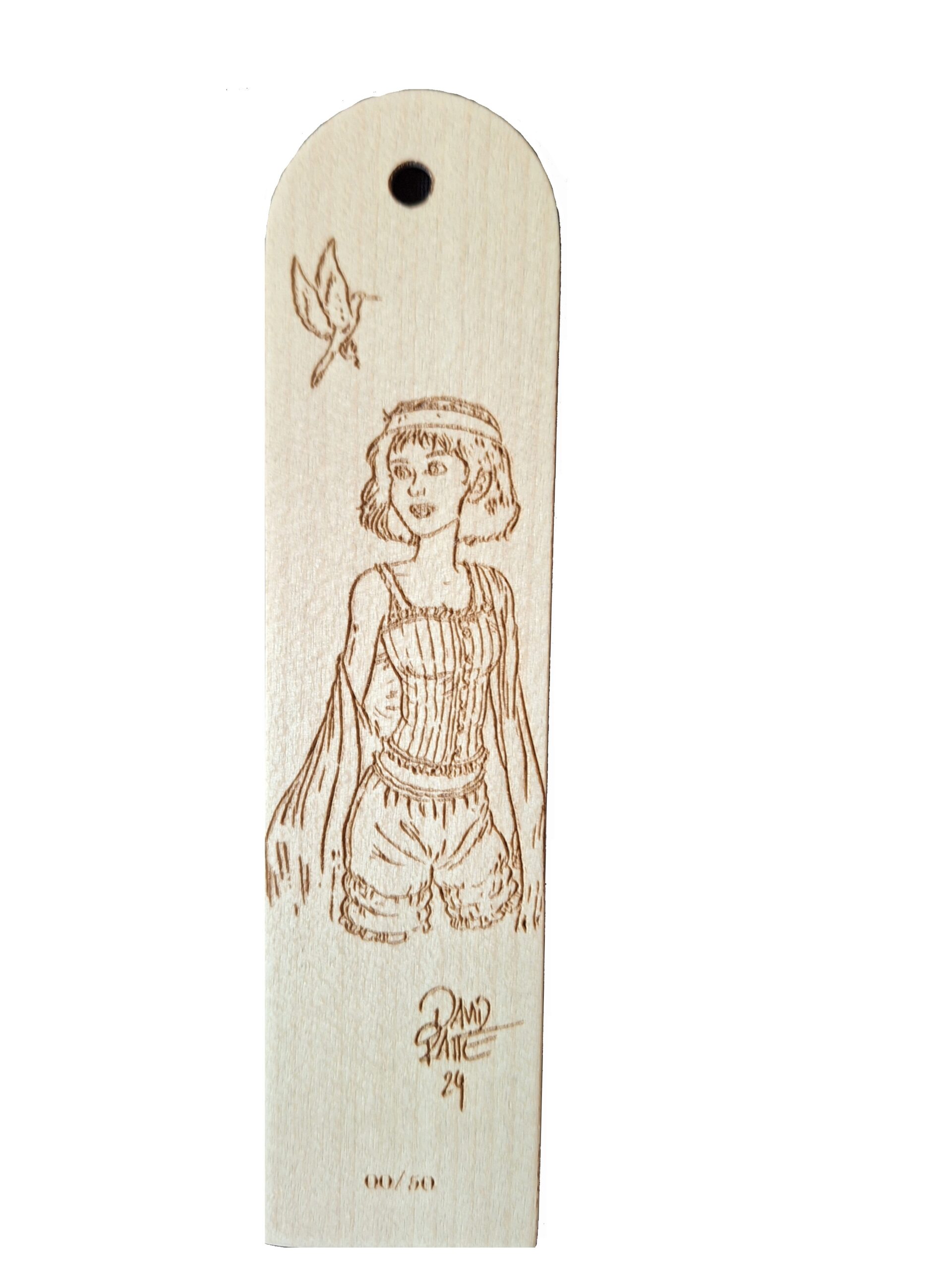 Ce marque-page est pyrogravé sur de l’érable sycomore de 1mm d’épaisseur et à une dimension de 160 x 40 mm.