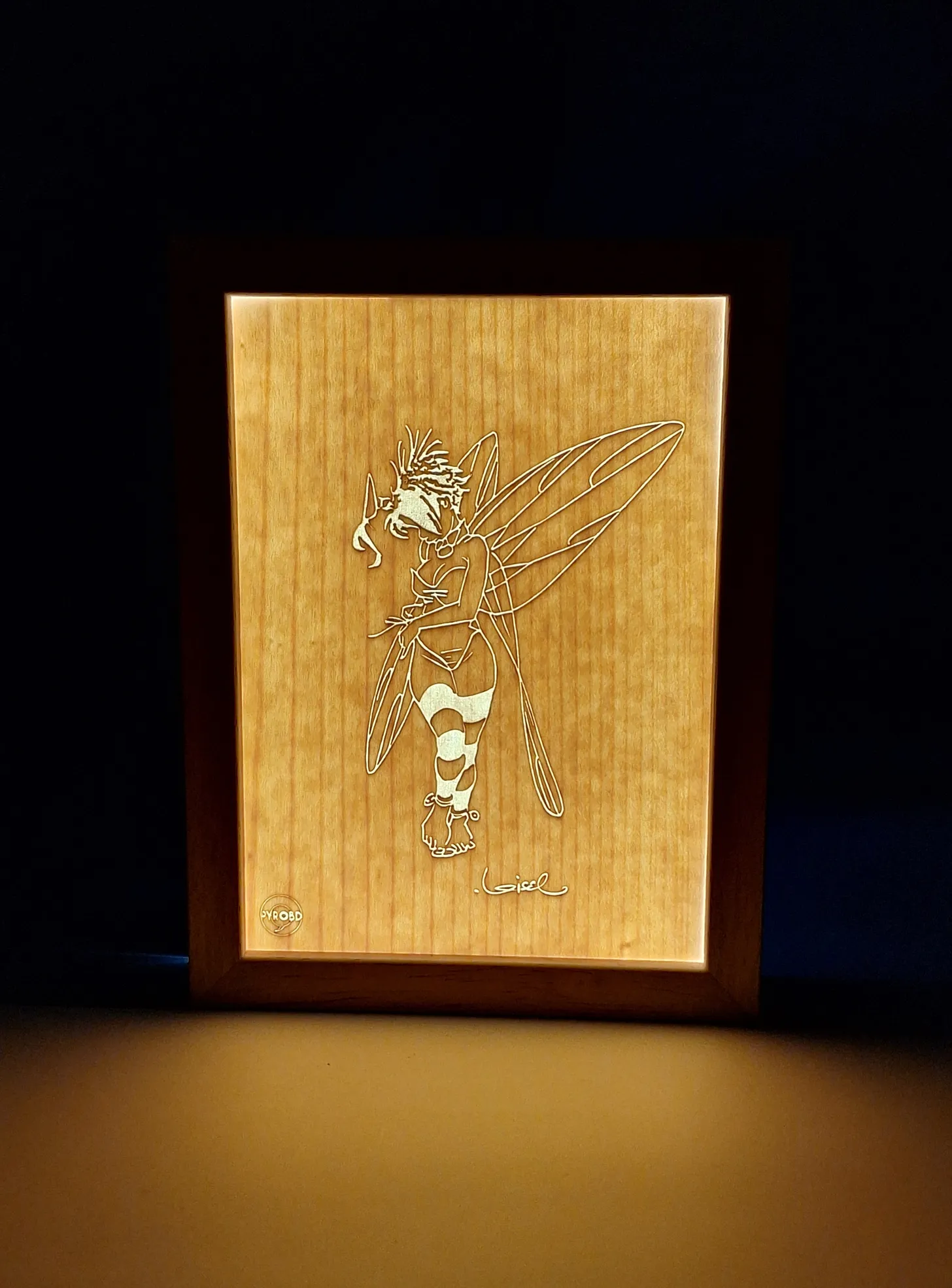 Tableau lumineux réalisé d’après un dessin de Régis Loisel représentant la Fée Clochette dans Peter Pan.